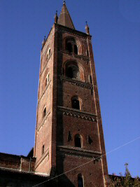 La chiesa di San Domenico si presenta, in esterno, con un fronte non in asse con la chiesa, partito in cinque campi delimitati da contrafforti a pianta quadrangolare, conclusi da un pinnacolo, il portale strombato sormontato da una trifora gotica e due bifore in corrispondenza delle navi laterali. I fianchi e la regione absidale della chiesa sono scanditi da contrafforti in corrispondenza dei pilastri interni d'imposta degli archi delle volte. La pianta dell’interno e’ a croce latina con transetto poco pronunciato; tre navate affiancate da cappelle con quattro campate per ogni navata. Le volte a crociera rette da otto colonne fasciate, sormontate da capitelli e collegate da arconi a sesto acuto; il presbiterio concluso da un'abside poligonale. Sebbene la presenza dei Domenicani in Chieri risalga almeno dal 1260-70, come si dedurrebbe dagli Statuti del 1313, la costruzione della chiesa gotica iniziò solo verso il 1326, negli anni in cui si tenne a Chieri, per la prima volta, il Capitolo Provinciale. La fabbrica di S. Domenico si riaprì tra la fine del XIV secolo e il primo ventennio del XV. Dovrebbero risalire a questo periodo i cicli di dipinti gotici ancora conservati, anche se in modo frammentario ed in attesa di restauro, alla base del campanile e in un piccolo locale a lato della sacrestia, nonché l'affresco della "Madonna del latte" sulla prima colonna a sinistra per chi entra. Nel 1499 i lavori si conclusero e la chiesa venne nuovamente consacrata. Strutturalmente era simile all'attuale, senonché l'altare principale era posizionato nella zona absidale ed era anticipato dal coro, posto nel presbiterio; un pontile, tra il transetto e l'aula, divideva la chiesa dei frati da quella dei fedeli; venti altari erano attivi. Dopo i modesti apporti della prima metà del XVI secolo, dei quali merita ricordare solo l'inserimento sull'altar maggiore del Crocifisso di Martino da Casale (oggi nella Sala Capitolare del Convento), furono effettuati, tra il 1581 e il 1582, alcuni spostamenti suggeriti dalla Controriforma: l'altare maggiore avanzò verso il transetto e si scambiò con il coro; il pulpito, dal pilastro sinistro del presbiterio, avanzò anch'esso, sino alla terza colonna di destra; l'altare della Madonna del Rosario, dal pilastro destro del transetto, dove si trovava, venne portato nella cappella attuale. Ma gli interventi più significativi dell'età moderna si ebbero nella prima metà del XVII secolo, per volontà e con il contributo della famiglia Broglia. Il primo artista chiamato ad operare in S. Domenico fu Robert Levoyer d'Orleans, pittore di corte, che dipinse un' "Annunciazione" (1597) e un "S. Giacinto" (1607). Fu poi la volta, tra il 1605 e il 1615, di Guglielmo Caccia detto il Moncalvo, che affrescò gli spicchi della volta del coro con i "Quattro Evangelisti" e le lunette sottostanti con episodi della "Vita di S. Domenico", quindi i cinque medaglioni con i "Santi Domenicani" nel catino absidale e, probabilmente negli stessi anni, dipinse le due grandi tele della "Resurrezione di Lazzaro" e del "Miracolo dei pani e dei pesci". Nel frattempo iniziarono i lavori per rinnovare la Cappella del Rosario, sull'altare della quale lo stesso Moncalvo e la sua scuola posero la stupenda pala della "Madonna con Figlio tra S. Domenico e S.Margherita". Ancora alla bottega del Moncalvo vengono attribuite le pale di "S. Pietro Martire ai piedi del Crocifisso" e della "Madonna con Bambino tra i SS. Giovanni Battista e Lucia". |