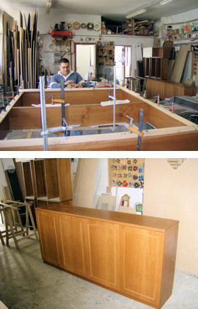 I lavori eseguiti sono mobili su misura di ogni genere usando qualsiasi tipo di materiale: